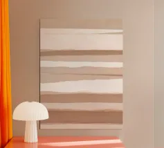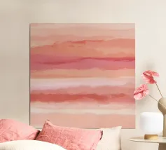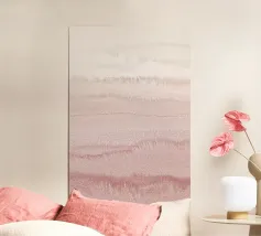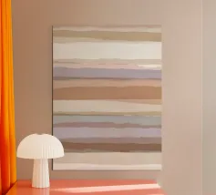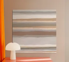 Weiche Kanten und unscharfe Texturen, taupefarbene und eierschalenfarbene, dicke und dünne Linien auf einem staubigen rosa Hintergrund. Entstanden aus dem Licht- und Schattenspiel von Jalousien.