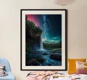 Wunderschöner Wasserfall unter einem Sternenhimmel Hahnemühle