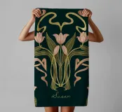 Verleihen Sie zeitloser Eleganz einen Hauch von Deco Tulip Bloom, einem individuell gestaltbaren Blumendruck im Art-Déco-Stil in kräftigen Waldtönen. Inspiriert von Motiven des Jugendstils, kombiniert dieses Kunstwerk raffinierte Tulpenformen mit geometrischer Symmetrie zu einem luxuriösen Statement. Personalisieren Sie es mit Ihrem Namen oder dem eines geliebten Menschen, um ein einzigartiges Geschenk oder einen maßgeschneiderten Akzent für Ihr Zuhause zu schaffen. Perfekt für Art Deco, florales oder modern-klassisches Interieur.
