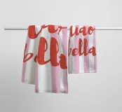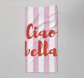 Dekoration mit italienischen Zitaten, feminine Raumdekoration, ästhetische rosa Streifen, Ciao Bella-Druck, mädchenhafte Typografie, romantische Phrasengestaltung
