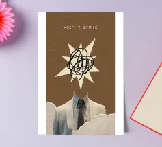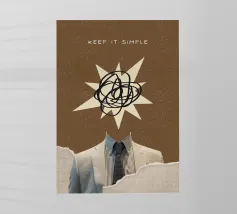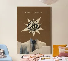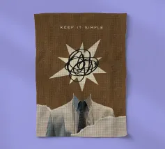 Lassen Sie sich von einer einzigartigen Mischung aus Raffinesse und chaotischer Kreativität mit diesem überzeugenden digitalen Poster begeistern. Das Kunstwerk zeigt einen eleganten Anzug und eine Krawatte, ohne Kopf, mit einem Ausbruch von abstrakten, gekritzelten Linien, die den Kopf ersetzen, vor einem strukturierten braunen Hintergrund. Der Schriftzug "KEEP IT SIMPLE" verankert den oberen Rand, während zerrissene Papierelemente mit einem Gittermuster einen faszinierenden Collage-Effekt erzeugen. Dieses Werk ist ein perfektes Statement für alle, die unkonventionelle Kunst mit einem Hauch von existenziellem Charme schätzen. Mit einer hohen Auflösung von 7000x5000 Pixeln und 300 dpi ist dieser Digitaldruck von höchster Qualität.