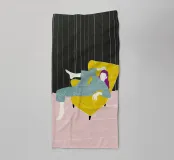 Dieses Design zeigt eine Frau mit violettem Haar, die lässig in einem senfgelben Sessel liegt – entspannt, selbstbewusst, ganz im Moment. Der Kontrast zwischen dem dunklen Hintergrund, dem pinken Boden und dem gelben Samtstuhl schafft eine kraftvolle, moderne Bildsprache mit Retro-Appeal. „Velvet Chair“ steht für Ruhe, Haltung und ein Stück Nonchalance – inspiriert vom echten Leben, stilisiert im klaren Bujaboom-Look. Perfekt für Wohnzimmer, Studio oder Arbeitszimmer – für alle, die Kunst mit Charakter und Haltung lieben