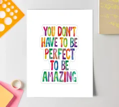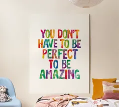 Erhellen Sie Ihren Raum mit diesem aufmunternden Typografie-Kunstdruck. Handgemalte Aquarell-Schriftzüge in leuchtenden Regenbogentönen erwecken die aufmunternde Botschaft vor einem strahlend weißen Hintergrund zum Leben. Dieser Druck ist die perfekte Mischung aus Kunst und Inspiration und erinnert Sie daran, dass Perfektion nicht notwendig ist, um großartig zu sein. Ideal für Heimbüros, Schlafzimmer oder jeden Bereich, der einen farbenfrohen Schub an Positivität braucht. Der hochwertige Druck sorgt dafür, dass die leuchtenden Farben und die filigranen Pinselstriche durchscheinen und das Motiv in jedem Raum zu einem Blickfang wird.