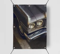 Atemberaubend detaillierte Frontpartie eines Oldtimers mit unglaublichem Realismus. Jede Kurve und Textur ist perfekt eingefangen. Ein atemberaubendes Stück digitaler Kunst für Autoliebhaber.