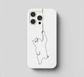 Der spielerische und abenteuerliche Geist einer Katze, die an einer Schnur hängt, mit dieser minimalistischen Strichzeichnung. Ein modernes abstraktes Kunstwerk, das Neugier, Beweglichkeit und katzenhaften Unfug symbolisiert.