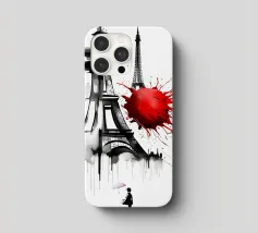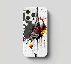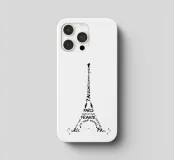 Das bekannte Wahrzeichen von Paris, der Eiffelturm, in einem sehr modernen Design. Kunstvolles Werk mit typografischen Elementen.