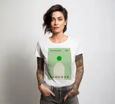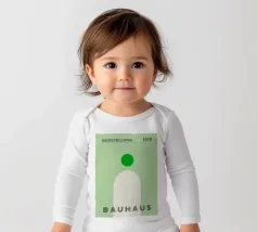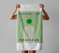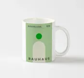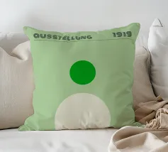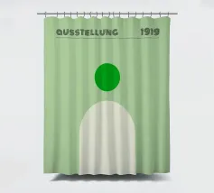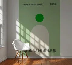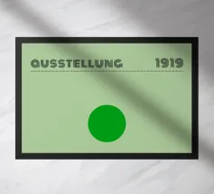 Modernes Bauhaus Poster in sanftem Grün und Beige mit geometrischer Minimalform, inspiriert von der Ausstellung 1919. Die klare Gestaltung mit Kreis und Halbkuppel strahlt Ruhe und Struktur aus – perfekt für ein stilvolles, modernes Zuhause. Ideal für Liebhaber von Minimal Art, Bauhaus-Ästhetik und zeitloser Wandgestaltung.