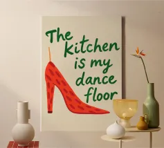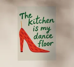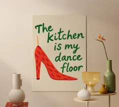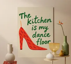 Dieses Poster bringt gute Laune direkt in die Küche! Mit einem leuchtend roten High Heel und der selbstbewussten Botschaft „The kitchen is my dance floor“ vereint es Style, Humor und Lebensfreude. Perfekt für alle, die zwischen Kochtopf und Kühlschrank ihre besten Moves zeigen. Ein Highlight für Küchen, Essbereiche – oder als Geschenk für tanzende Genießer:innen.