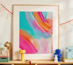 Ein ruhiges, modernes, abstraktes Bild, das aus sanften, abgerundeten Formen in Rosa, Flieder, Koralle, Mint und Tiefschwarz besteht. Die geschichteten Formen schweben mühelos auf einem strukturierten, hellen Hintergrund und schaffen ein Gefühl von Weichheit und Ausgeglichenheit. Dieses Kunstwerk bringt eine frische, moderne Stimmung in jedes Interieur - harmonisch, luftig und leise ausdrucksstark.