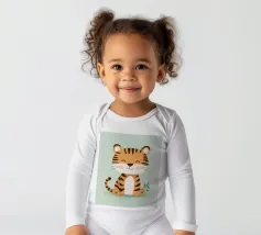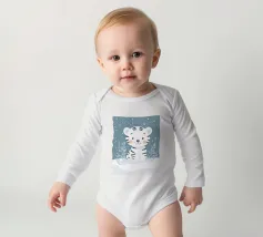 Alle unsere Langarm-Babystrampler sind farbecht und bei 40 °C in der Maschine waschbar.