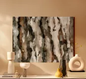 Eine meditative Serie von Aquarellbildern, die sich mit den komplizierten Strukturen und tonalen Rhythmen von Baumrinde befassen. Mit einer gedämpften Palette von Schwarz-, Braun- und Grautönen fängt jedes Werk den organischen Fluss und die geschichteten Oberflächen der Waldstämme ein. Die vertikalen Kompositionen spiegeln die ruhige Wiederholung der Natur wider und bieten sowohl Struktur als auch Weichheit durch ausdrucksstarke Abstraktion.