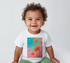 Klassisches, bequemes Baby T-Shirt mit lockerer Passform und praktischen Druckknöpfen.
