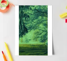 Ein Weg im Wald, die Farben wurden etwas ins Extreme verändert.