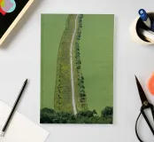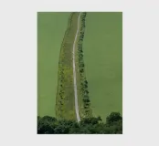 Ein schmaler Weg führt durch weite grüne Felder, die von Reihen kleiner Bäume und Sträucher gesäumt werden. Das leuchtende Grün erstreckt sich auf beiden Seiten und trifft unten auf die dunkleren Töne eines dichten Waldes. Wolken erzeugen sanfte Schatten auf dem Feld. Dieses ländliche Motiv habe ich auf dem Gipfel des Lilienstein, dem Wahrzeichen der Sächsischen Schweiz, aufgenommen.