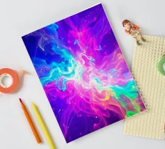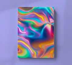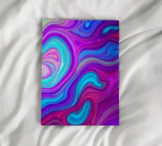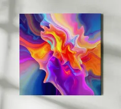 Lebendige abstrakte Kunst zeigt dynamische Wirbel und fließende Muster in einer faszinierenden Mischung aus leuchtenden Farben wie Blau, Lila, Orange und Pink. Das Kunstwerk vermittelt ein Gefühl von Bewegung und Energie.