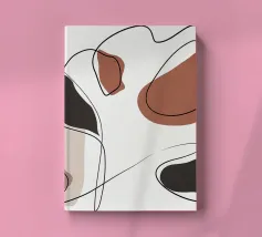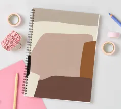 Eine Sammlung sich überlappender geometrischer Formen schafft ein minimalistisches und abstraktes Design. Neutrale Töne wie Braun, Beige und Schwarz dominieren das Bild und sorgen für eine ruhige und ausgewogene Komposition.