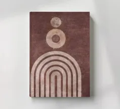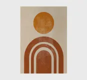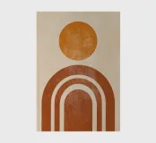 Bringen Sie Wärme und Ausgeglichenheit in Ihren Raum mit diesem abstrakten geometrischen Kunstwerk, das ein Sonnen- und Bogenmotiv in erdigen Terrakottatönen zeigt. Die minimalistische Retro-Ästhetik verleiht jedem Interieur einen zeitlosen, beruhigenden Touch. Perfekt für moderne, böhmische oder skandinavisch inspirierte Einrichtungen.