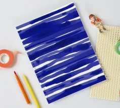 Handgemalte Pinselstrichwellen in Kobalt- und Hellblautönen. Dynamisch mit einem Gefühl der Bewegung.