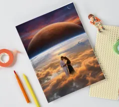 Erleben Sie eine atemberaubende Reise über die Erde hinaus mit diesem surrealen kosmischen Kunstdruck, der zwei ruhig sitzende Figuren zeigt, die den am Nachthimmel schwebenden Saturn betrachten. Die Mischung aus traumhafter Vorstellungskraft und realistischen himmlischen Details schafft eine friedliche und doch ehrfurchtgebietende Atmosphäre. Dieses Kunstwerk ist perfekt für Weltraumliebhaber, Träumer und moderne Inneneinrichtungen und verleiht jedem Wohnzimmer, Büro oder kreativen Raum Tiefe, Neugier und Inspiration. Eine schöne Erinnerung an Wunder, Größe und das unendliche Universum.