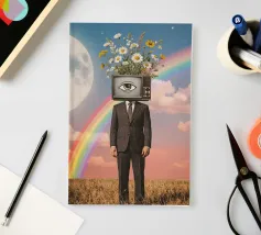 Frank Moth schafft absurde und doch schöne Kunstwerke, indem er ein Medley aus alten Bildern nebeneinander stellt. Seine Porträts und Landschaften sind mit Songtexten, technischen Diagrammen und Elementen aus der Science Fiction durchsetzt. Die farbenfrohen, detailreichen Kunstwerke des in Veria lebenden Collagekünstlers spielen mit Proportionen und Perspektive und sind von Wärme und Humor durchdrungen.