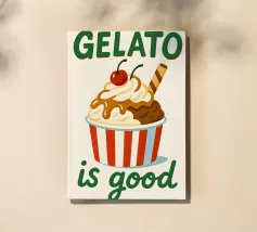 Ein Vintage-inspiriertes Zitat-Poster mit leuchtenden Grün- und Orangetönen, eingerahmt von einem gewellten Retro-Rahmen. Es bringt Positivität und Farbe in jeden modernen Raum.