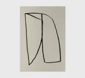 Ein einfacher, abstrakter Stil mit einem beigen Hintergrund und einem schwarzen Umriss einer geometrischen Form. Die Komposition ist sauber und unaufgeregt.