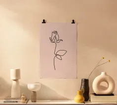 Schmücken Sie Ihren Raum mit der schlichten Eleganz dieses digitalen Posters, das eine einzelne Rose in einer fließenden, schwarzen Linie zeigt. Das minimalistische Design fängt die Essenz der Blumenform mit anmutigen Kurven und einer knospenden Spitze wunderbar ein. Vor einem zartrosa Hintergrund verleiht dieser Druck jedem modernen oder romantischen Ambiente einen raffinierten und künstlerischen Touch. Dieses hochwertige Digitalposter wird mit einer beeindruckenden Auflösung von 7000x5000 Pixeln und 300 dpi geliefert, was eine außergewöhnliche Klarheit und feine Details für ein wirklich raffiniertes Kunstwerk gewährleistet.