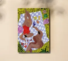 Frauen und ihre Freundschaften. Das ist der Fokus von Dina Bukvas wunderschönen Arbeiten, die sie hauptsächlich auf Acryl fertigt. Die aus Kroatien kommende und in Wien lebende Künstlerin absolvierte 2018 ihren Master in Grafik- und Kommunikationsdesign am Central Saint Martins, um nur wenige Zeit später ihre eigene Brand, NUDES AND CROISSANTS, ins Leben zu rufen. Die Brand zelebriert die Vielfalt in allen Aspekten und Formen und ist inspiriert von der Schönheit des täglichen Lebens. Die animierten Kurzfilme der Künstlerin wurden auf diversen Festivals gezeigt und ausgezeichnet. Dina ist Mitarbeiterin des Gault&Millau Magazins und hat bereits mit Marken wie ZARA zusammengearbeitet.
