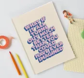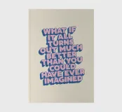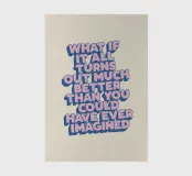 Bringen Sie einen Hauch von Optimismus in Ihren Raum mit diesem atemberaubenden Typografie-Kunstdruck. Das Motiv zeigt handgezeichnete 3D-Schriftzüge in leuchtendem Rosa und Blau auf einem warmen beigen Hintergrund und lautet: "What If It All Turns Out Much Better Than You Could Have Ever Imagined." Dieses Stück ist perfekt geeignet, um positive Stimmung zu verbreiten und Ihr Zuhause oder Ihr Büro zu erhellen. Es verbindet Retro-Charme mit moderner Ästhetik. Sein einzigartiger, handgefertigter Stil macht ihn zu einem idealen Geschenk für Geburtstage, Einweihungen oder alle, die einen Motivationsschub brauchen. Peppen Sie Ihre Einrichtung mit diesem auffälligen und aussagekräftigen Kunstwerk auf