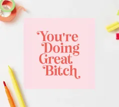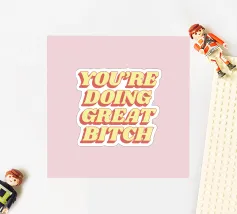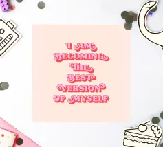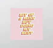 Bringen Sie Ihren Raum zum Lächeln mit diesem verspielten Kunstdruck mit fetten roten und gelben 3D-Schriftzügen im Retro-Look auf einem zarten pastellrosa Hintergrund. Der Spruch "Bit of a Mess But Doing my Best" fängt die Höhen und Tiefen des Lebens mit Wärme und Humor ein. Perfekt zum Verschenken an Freunde, Studenten oder alle, die einen Hauch von Positivität und Nostalgie zu schätzen wissen. Die leuchtenden Farben und der vom Vintage-Stil inspirierte Stil machen es zu einer aufmunternden Ergänzung für jedes Zuhause oder Büro, ideal für Geburtstage, Weihnachten oder einfach nur so.