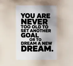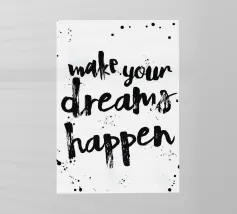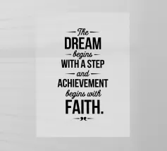 "Die Worte 'The distance between dreams and reality is called action' (Der Abstand zwischen Träumen und Realität heißt Aktion) sind in einem visuell auffälligen Typografie-Layout angeordnet und betonen die Kraft des Handelns, um Ziele zu erreichen. Der Text ist fett und eindrucksvoll und steht vor einem sauberen, minimalistischen Hintergrund, der ein Gefühl von Motivation und Entschlossenheit vermittelt",