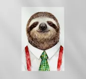 Ein langsames und ruhiges Faultier in gepflegter Bürokleidung, das mit ruhiger Zuversicht an seinen Arbeitsplatz geht.