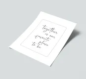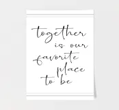 Bringen Sie einen Hauch von Romantik mit unserem Design "Together is our favorite place to be". Mit handgeschriebener schwarzer Schrift auf weißem Hintergrund ist dieses inspirierende Zitat perfekt für Paare und Familien. Wählen Sie aus einem Poster, einem Kissen, einem Duschvorhang oder einer Tasse, um Wärme und Liebe in Ihren Raum zu bringen. Eine wunderbare Geschenkidee für einen geliebten Menschen oder eine charmante Ergänzung für Ihr Zuhause. Zelebrieren Sie die Magie der Zweisamkeit mit unserem typografischen Druck.