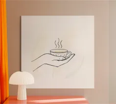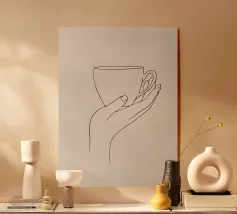 Hand mit Kaffeetasse auf Grün Acryl-Glas