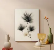 A refined botanical study of pine needles rendered with clean ink-like linework and subtle neutral accents. This minimalist piece merges natural form with graphic precision, ideal for modern interiors, forest-inspired spaces, or collectors of organic simplicity.