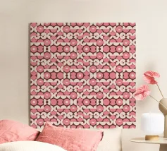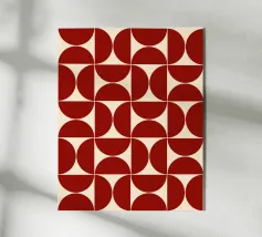 Dieses elegante runde Muster zeichnet sich durch fließende, gewellte Elemente aus, die ein Gefühl von ruhiger Bewegung und Harmonie vermitteln. In einer beruhigenden Kombination aus Rot und sanftem Pastellbeige gehalten, wirkt das Kunstwerk sowohl modern als auch zeitlos. Die organischen, wellenartigen Linien verleihen dem Muster einen sanften Rhythmus und machen es zu einer perfekten Wahl für Textilien, Heimdekoration oder Schreibwaren. Die kreisförmige Komposition sorgt für ein ausgewogenes und zentriertes Gefühl - ideal für alle, die abstraktes, fließendes Design mit einer raffinierten Farbpalette lieben.