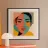 Abstraktes Porträt einer Frau mit geometrischen Farbblöcken Poster mit Kunststoffrahmen