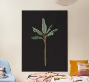 Boho Coastal Surfer Bananenbaum auf schwarzem Hintergrund Aquarell Minimalistische Illustration