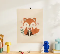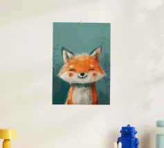 Charmanter Fuchs mit verspielten Gesichtszügen und einem weichen Hintergrund Poster