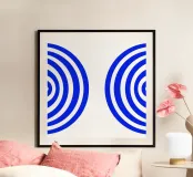Blaue und weiße Kreise Kreise, modern print, abstrakt, geometrisch, minimalistisch.