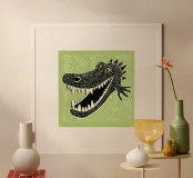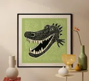 Grünes Krokodil 2 Poster mit Kunststoffrahmen