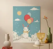 Kaninchen mit Luftballons für das Kinderzimmer Poster