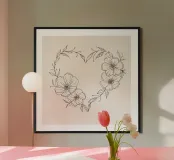 Line-Art. Minimalistisch gezeichnetes Herz mit Blumen und Blättern. Für Verliebte, Paare, Romantiker, Hochzeit, Verlobung, Glückwünsche, Wertschätzung.