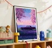Ein Retro-Auto in Kirschblüten Lofi Art Poster