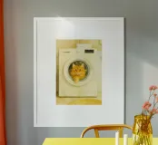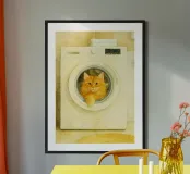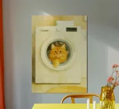 lustige Katze in der Waschmaschine Retro-Kunstzeichnung Poster