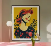 Dieses Poster ist eine nostalgische Hommage an den Mid-Century-Stil und die Illustrationen der 50er und 60er Jahre. Der Stil erinnert an die lebendige Ästhetik alter Magazin-Cover, kombiniert mit der einfachen Farbpalette des Siebdrucks. Die Farbkontraste aus leuchtendem Gelb, sattem Rot und tiefem Schwarz geben dem Bild eine kraftvolle Dynamik. Die Frau, dargestellt mit geschlossenen Augen und einem sanften Lächeln, strahlt eine ruhige Gelassenheit aus. Es ist ein Bild, das nicht nur eine Geschichte erzählt, sondern auch eine Atmosphäre von jugendlicher Fröhlichkeit in den Raum bringt.