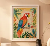 Bunter Papagei inmitten von tropischem Laub in einer üppigen Poster mit Kunststoffrahmen
