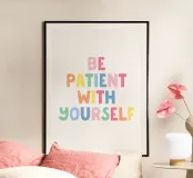 Sei geduldig mit dir selbst Zitat Poster mit Holzrahmen