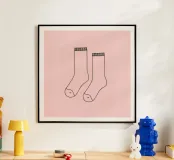 Einfaches Design eines Paars Socken mit rosa Hintergrund Poster
