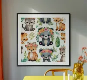 Niedliche Tierillustrationen mit Bären, Füchsen und Waschbären Poster
